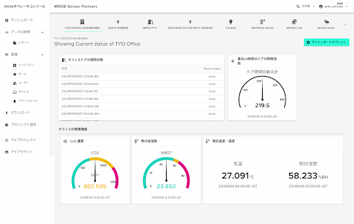 ・MODEオフィスにセンサーを設置することでオフィス環境(室温・CO2濃度)の