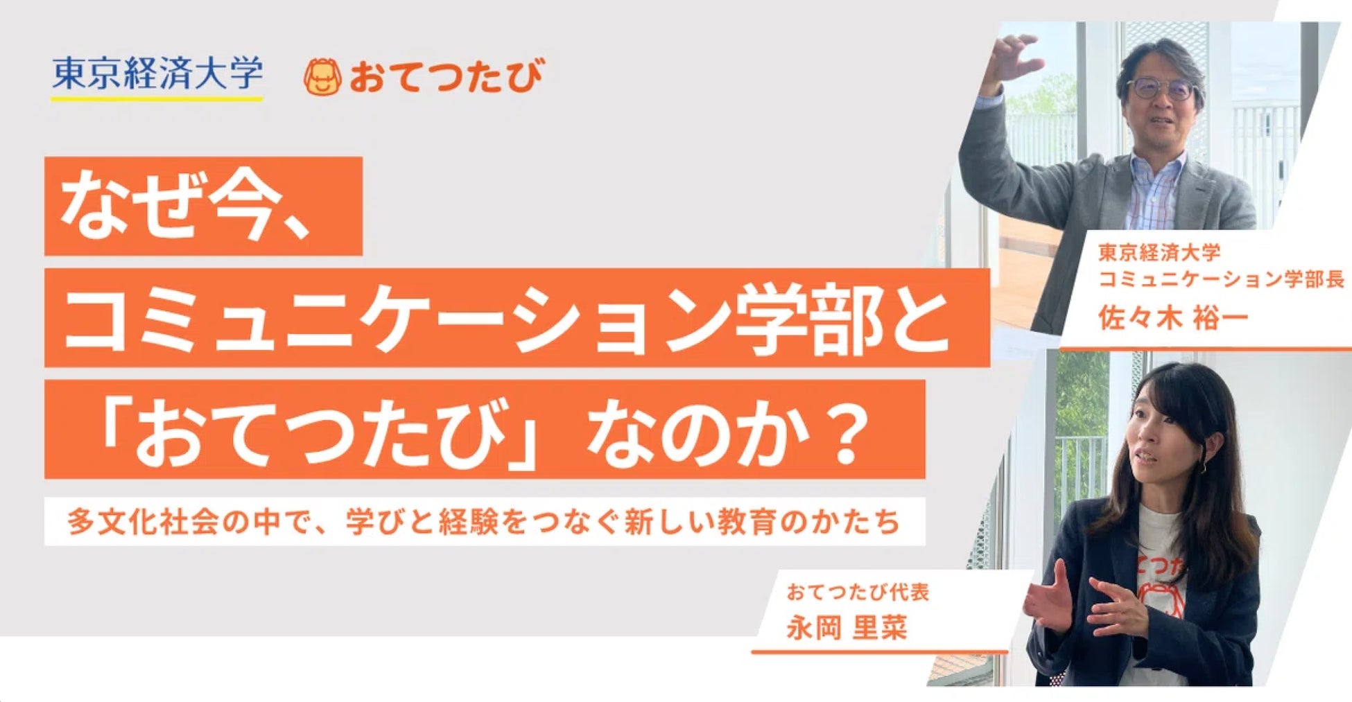 –「なぜ今、コミュニケーション学部と『おてつたび』なのか?多文化社会の中で、学びと経験をつなぐ新しい教育のかたち」(東京経済大学 コミュニケーション学部長 佐々木裕一 × 株式会社おてつたび 代表 永岡里菜 )https://note.com/otetsutabi/n/n22e7df6561f4
