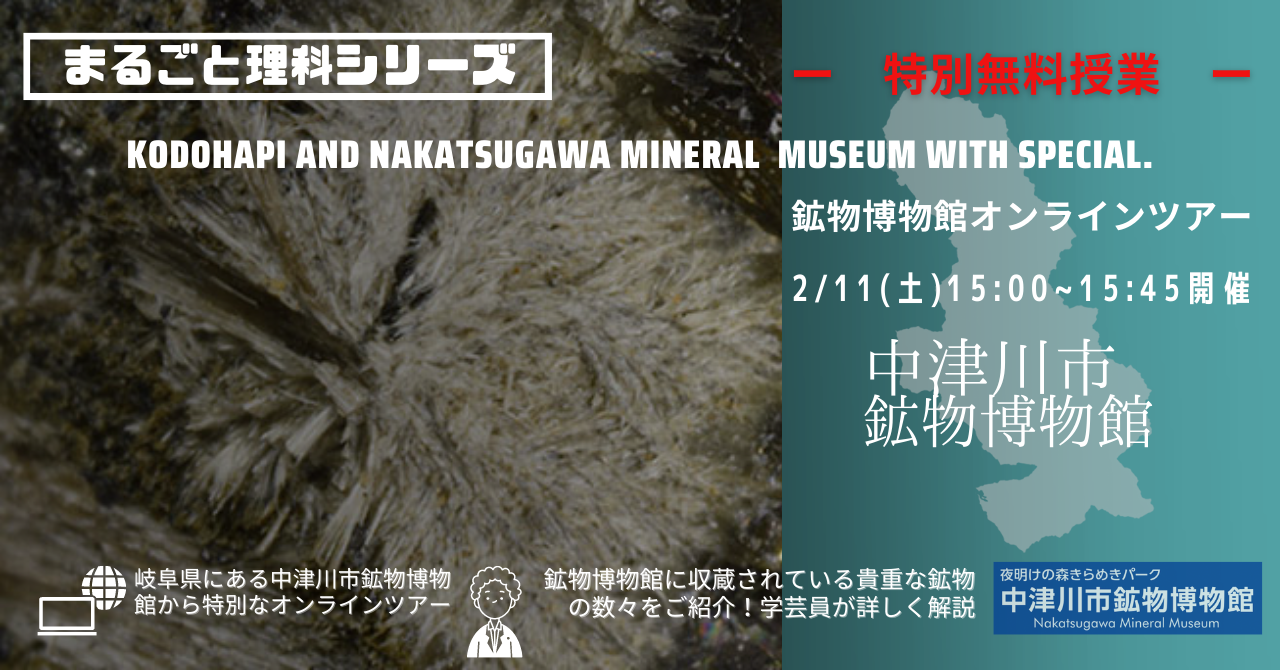 まるごと教科書シリーズ理科コースと中津川市鉱物博物館がコラボレーション授業開催 一太陽と地球惑星すごい鉱物一 中津川市鉱物博物館オンラインツアー2月11日(土)開催