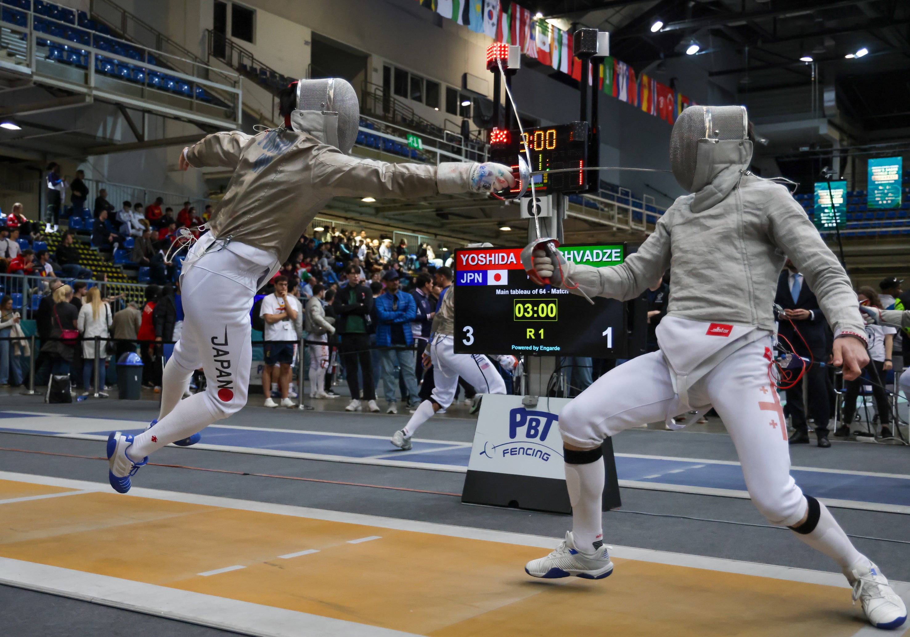 𠮷村は今大会を世界ランク43位で迎え、トーナメント64で世界ランク10位のFIAMINGO選手(ITA)に10対15で敗退、吉田は今大会を世界ランク17位で迎え、トーナメント64で世界ランク136位のARCHVADZE(GEO)に15対10で勝利。トーナメント32で世界ランク51位のGEMESI選手(HUN)に12対15で敗退したものの、両選手共にアジアオセアニアゾーン2枠(団体出場国選手を抜かしたアジアオセアニアゾーン上位2名)での五輪出場権獲得となりました。