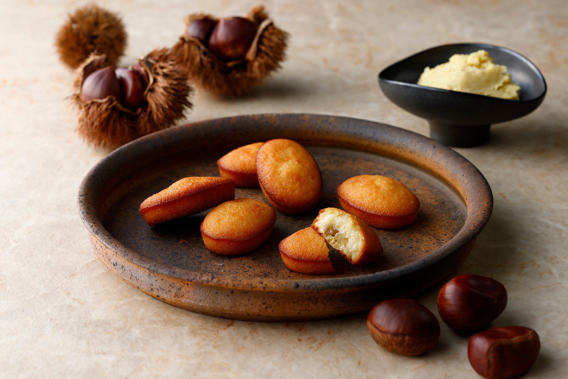 今回、『フィナンシェ』の新たな季節限定フレーバーとして『マロンフィナンシェ』を販売いたします。芳醇なバターが香るフィナンシェ生地で、ブランド和栗「笠間の栗」本来の味わいを堪能できるマロンペーストを包み込み、しっとりと焼き上げました。ひと口食べると、アーモンドの香ばしさやバターの風味に、チーズのコク、マロンペーストのふくよかな甘みが調和した美味しさがお楽しみいただけます。ブランド和栗「笠間の栗」と砂糖のみで作られたマロンペーストの上品な香りと甘みを引き立てるため、形状にも工夫した一品です。