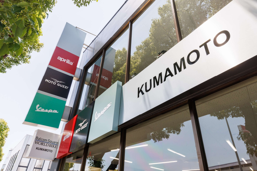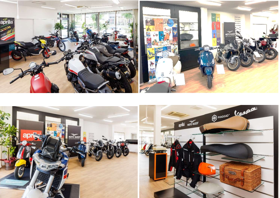 同店は、ピアッジオグループジャパン㈱が取り扱うブランドのコーナーショップ『バルコムスクエア ワールドバイ ク熊本』として販売及びサービス活動を行っておりましたが、この度、店舗の総床面積を約 420 ㎡へと拡充し、ア クセスの良い、九州縦貫自動車道 熊本 IC に近い国道 57 号線熊本東バイパス沿いへ移転し、ピアッジオグル ープが全世界で展開しているコーポレートデザイン「モトプレックス・コンセプト」に基づいた CI デザインを導入し たベスパ、モト・グッツィ及びアプリリアを扱う専売店舗として、プレミアムなブランド感を際立たせた店舗デザイン を採用してリニューアルオープンいたしました。