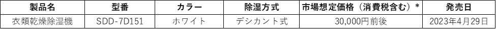 シロカ株式会社(東京都・千代田区)は、室温が下がっても除湿能力が下がりにくいデシカント式を採用した「衣類乾燥除湿機」を2023年4月29日に発売します。