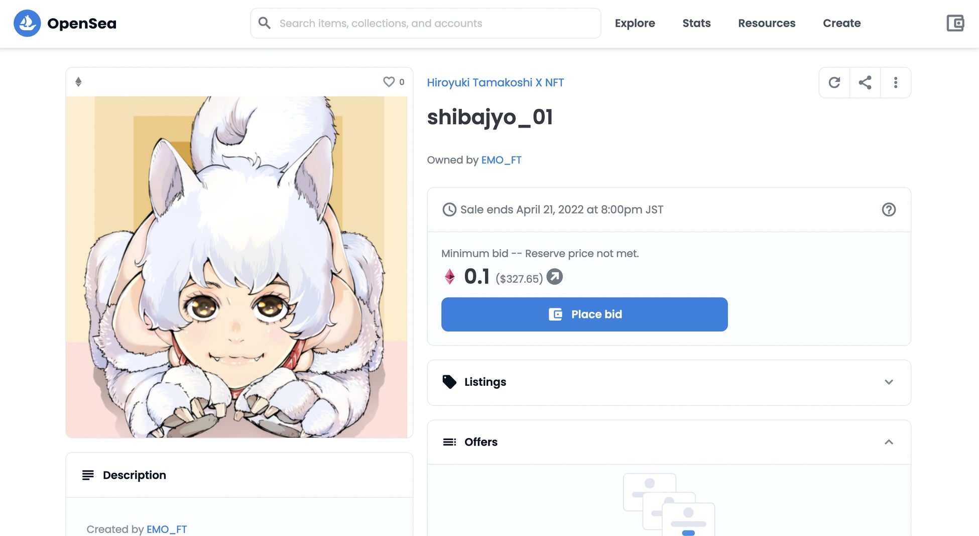 販売場所 URL:https://opensea.io/assets/0x30d5407800539a0de9c82d47611f477af047052e/1