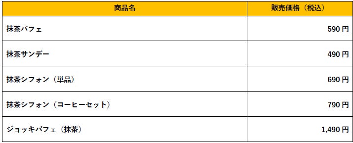 ※「抹茶シフォン(コーヒーセット)」のコーヒーは、「ホットコーヒー(シングルオリジン・ブレンド)」、「アイスコーヒーⓈ(シングルオリジン・ブレンド)」の4 種からお選びいただけます。