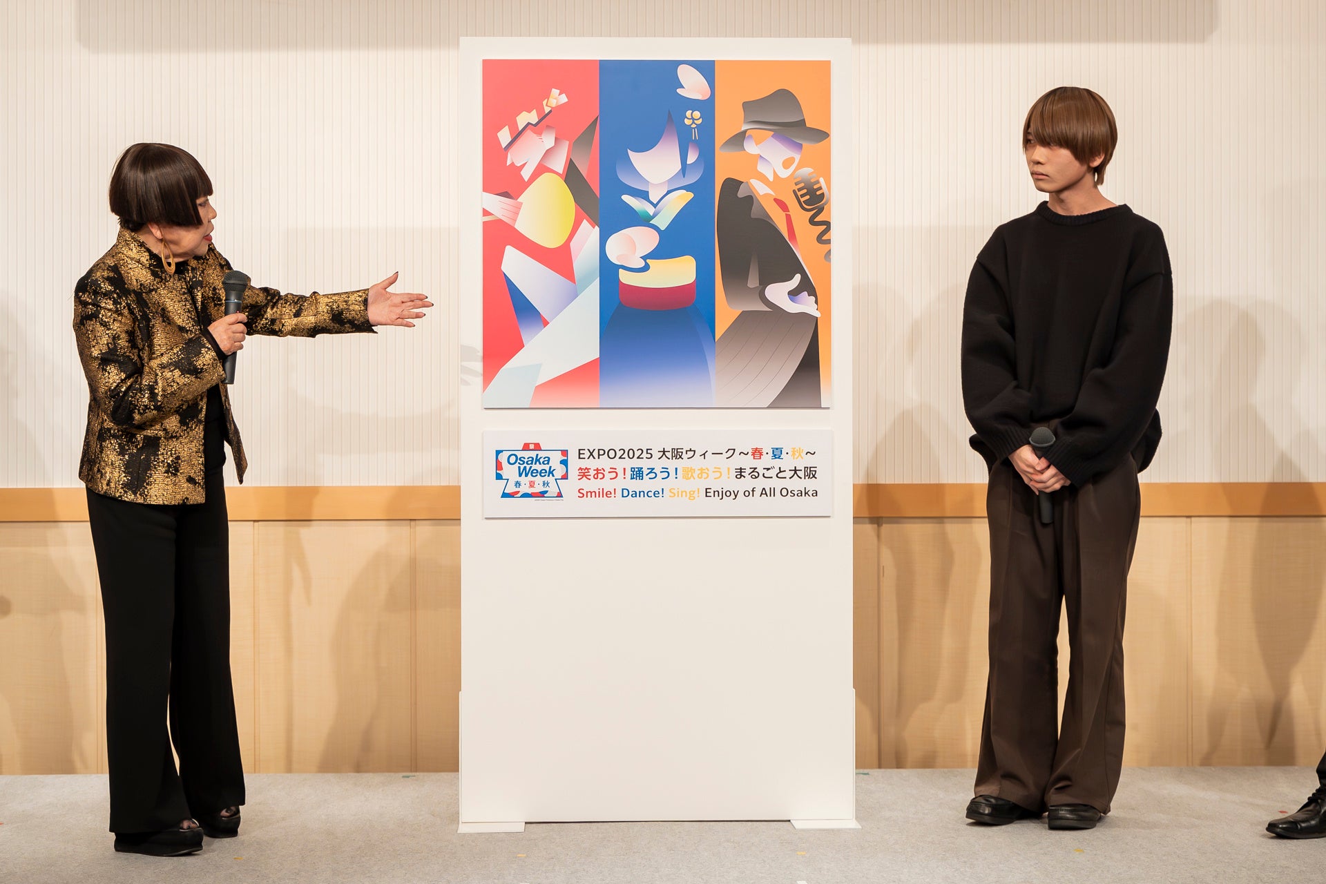 「大阪ウィーク〜春・夏・秋〜」は大阪・関西万博において、大阪の各地域の魅力を、国内外からの来場者に広くアピールする一大イベント。「祭」をテーマに万博会期中の35日に渡って開催され、会場を賑やかに盛り上げる、関西万博の目玉ともいえるスケールの大きなイベントです。1月21日には「シティプラザ大阪」において、「大阪ウィーク〜春・夏・秋〜」メディア発表会とともに、キービジュアルの授賞式が執り行われました。