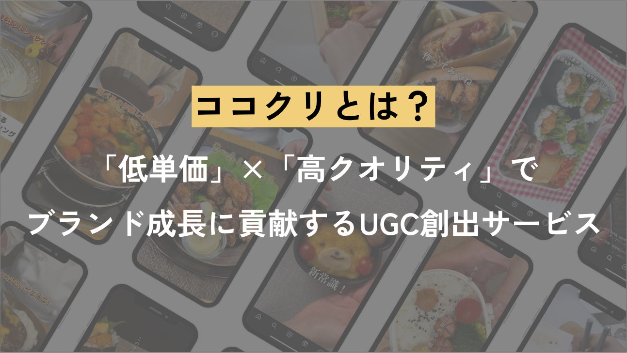 『ココクリ』は、「低単価」×「高クオリティ」でブランド成長に貢献する口コミ創出サービスです。ユーザーは『ココクリ』に掲載されている商品の中から、気になる商品を購入しSNSにPR動画を投稿。ユーザーは投稿したPR動画の再生数によって報酬を得ることができます。