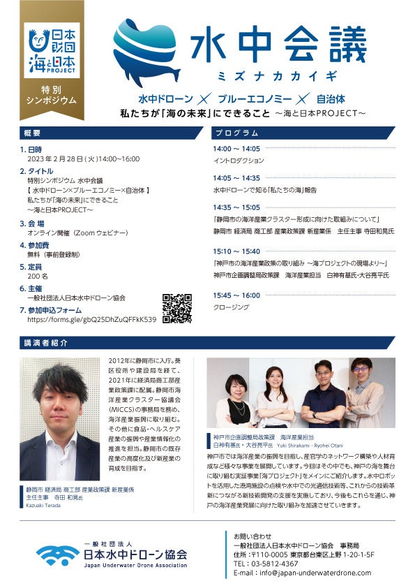 - 特別シンポジウム 水中会議「水中ドローン×ブルーエコノミー×自治体」開催概要