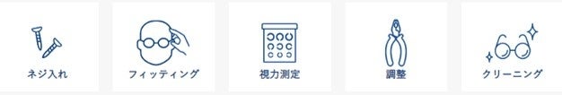 ネジ入れ・フィッティング・視力測定・調整・クリーニングの「5つの無料サービス」を行っております。