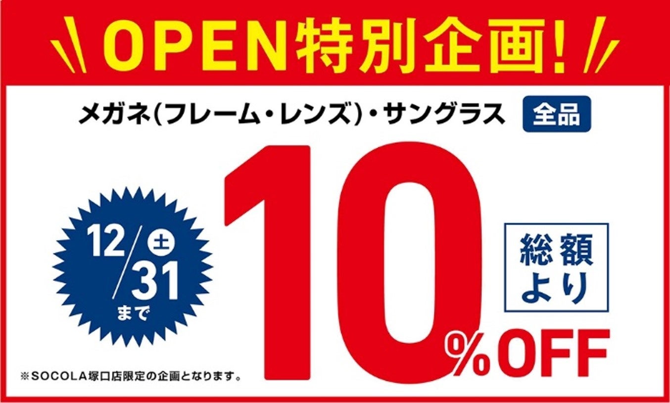 メガネ(フレーム・レンズ)・サングラスが総額より10%OFFになる企画を2022年12月31日(土)まで実施致します。是非この機会にお越しくださいませ!