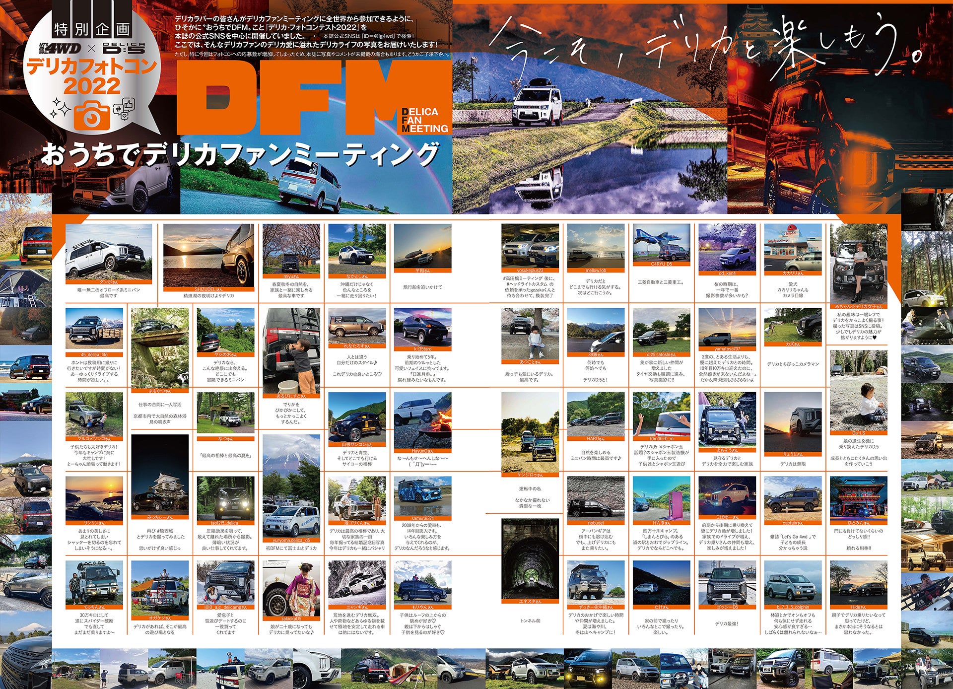 デリカラバーの皆さんがデリカファンミーティングに全世界から参加できるように、ひそかに“おうちでDFM”こと『デリカ・フォトコンテスト2022』を本誌の公式SNSを中心に開催しておりました。