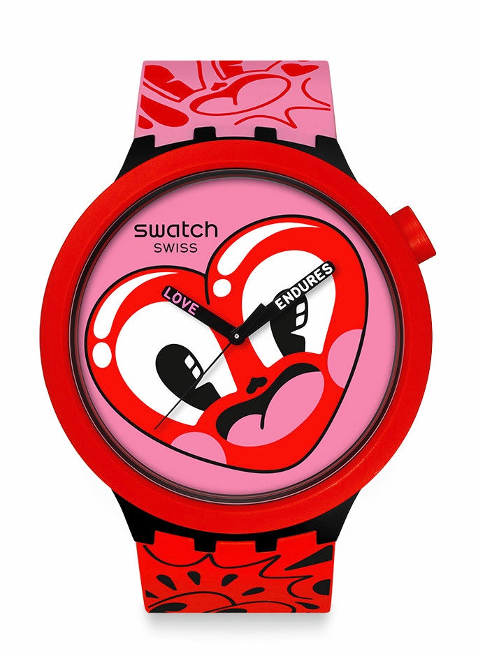 「落書き好き」の英国人アーティストHattie Stewartは、ハートが大好きです。彼女のBIG BOLD BIOSOURCEDのデザインは、1984年に開催されたイベントでのブレイクダンス、アート、音楽への愛、そしてともに過ごした素晴らしいひと時にインスパイアされています。彼女のトレードマークとも言えるハートを文字盤にあしらったこの47mmのモデルは、さらに探求を重ね、レッドとブラックで物語に命を吹き込める大きな「キャンバス」になっています。2本の針には「Love Endures」(愛は永遠に)の文字が刻まれ、Hattieがこのイベントから感じた力強いメッセージを伝えています。