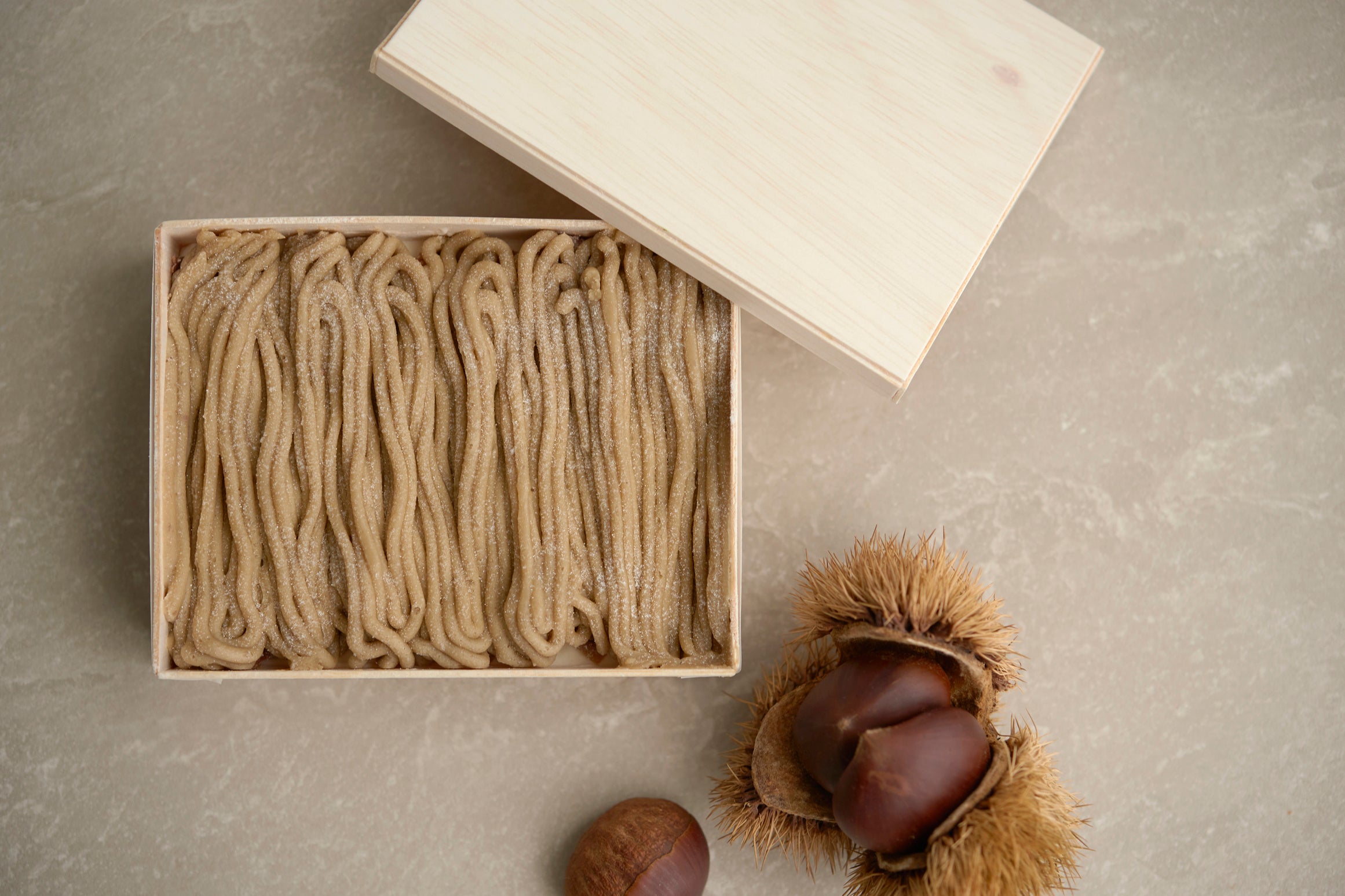 モンブランクリームには、栗の産地として有名な長野県小布施町産の和栗を使用。少量のメープルシロップや焦がしバター、イタリア産の栗の粉を加えて香ばしさや旨味を加えつつ、和栗自体の濃厚な味わいが引き立つように仕上げています。