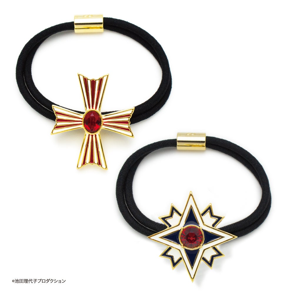 「ベルサイユのばら」とのコラボレーションアイテム。男装の麗人オスカルの勲章をモチーフにしたポニーは中央のスワロフスキー®・クリスタルがきらめく、凛とした美しさをまとった唯一無二のデザインです。裏面はリングになっており、ご自身でゴムの交換が可能。長くご愛用いただけます。
