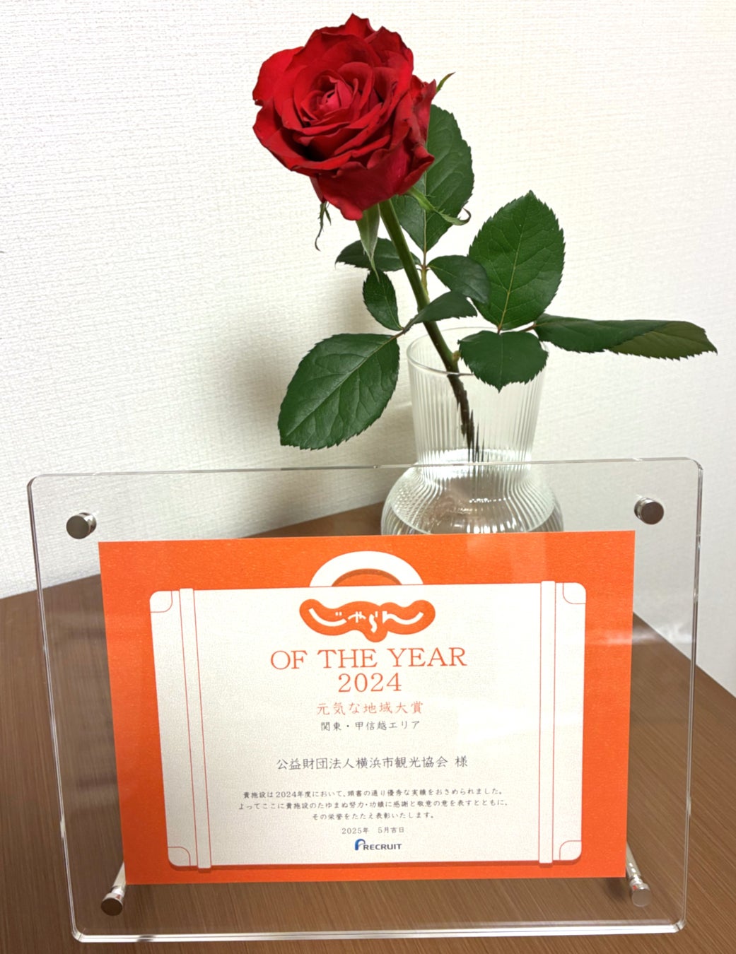 2025年6月30日(月)に株式会社リクルート「じゃらんアワード2024」関東・甲信越ブロックの表彰式が開催され、公益財団法人横浜市観光協会(以下、当財団)が『じゃらんOF THE YEAR 元気な地域大賞』を受賞しました。