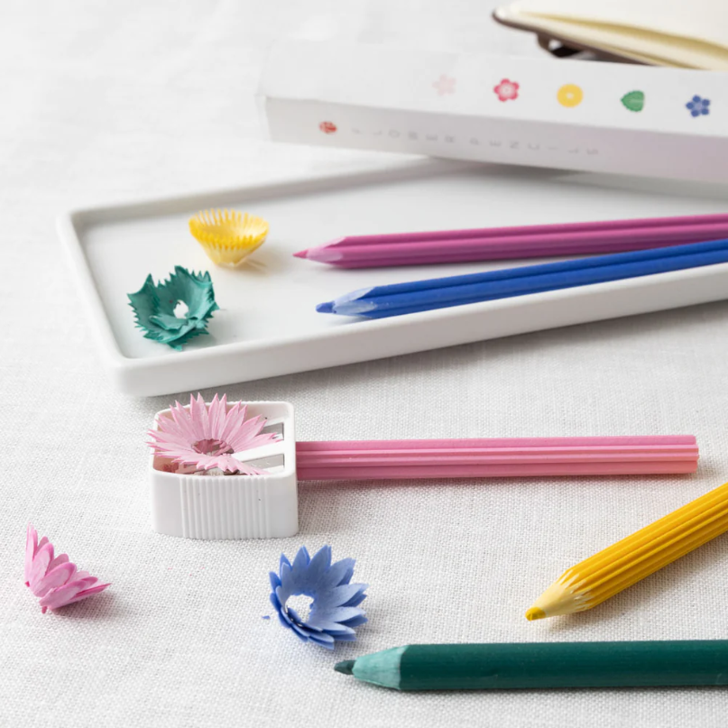 削りかすから花びらが生まれる色鉛筆「花色鉛筆」は、日本を代表する伝統的な花の「色」と「かたち」を持ち、削りかすが花びらになるなど、心が弾む色鉛筆です。「外国の友人や子どもにも喜ばれる、美しいギフトを贈りたいな」、そんな場面にオススメのアイテムを販売しています。