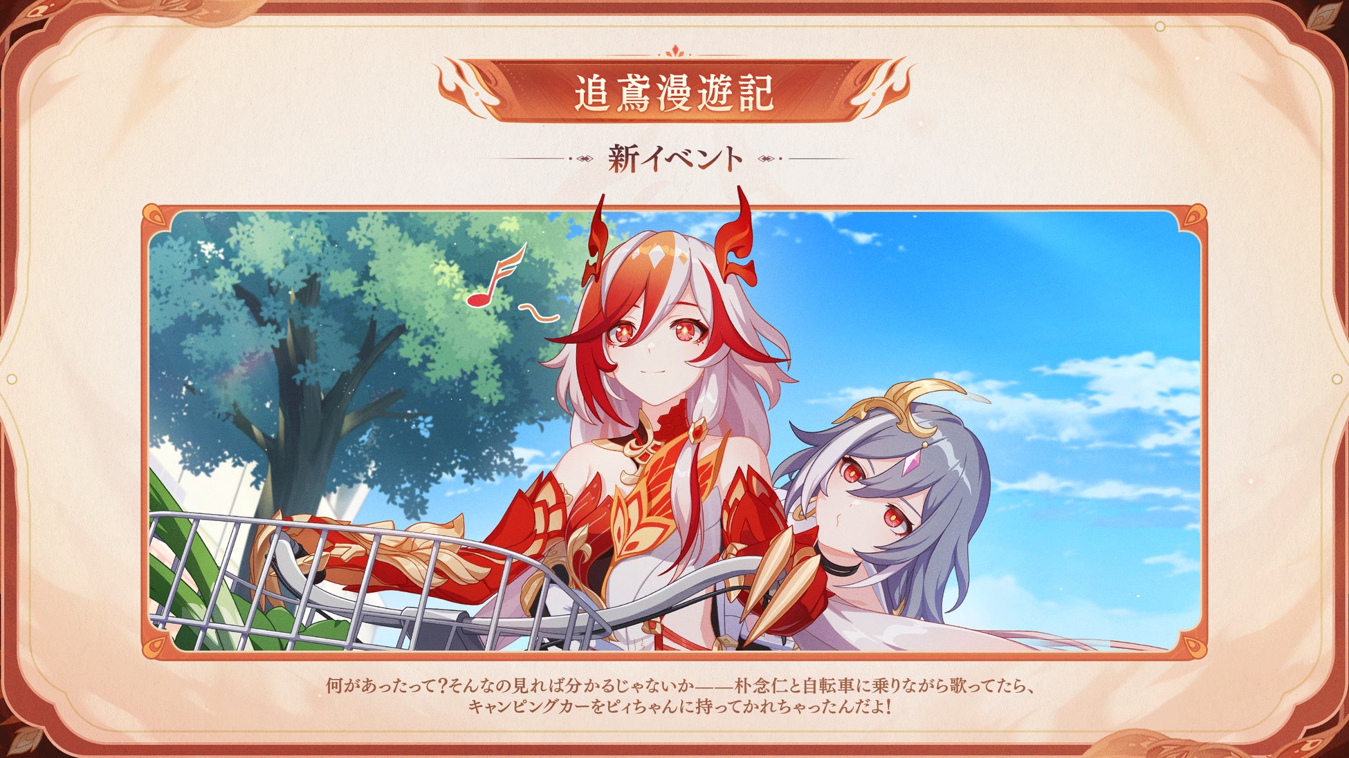 Ver.7.2にてテーマイベント「追鳶漫遊記」開催!フカや識の律者たちと一緒に旅し、ボールと記念品を集めて、敵からキャンピングカーを奪い返しましょう!