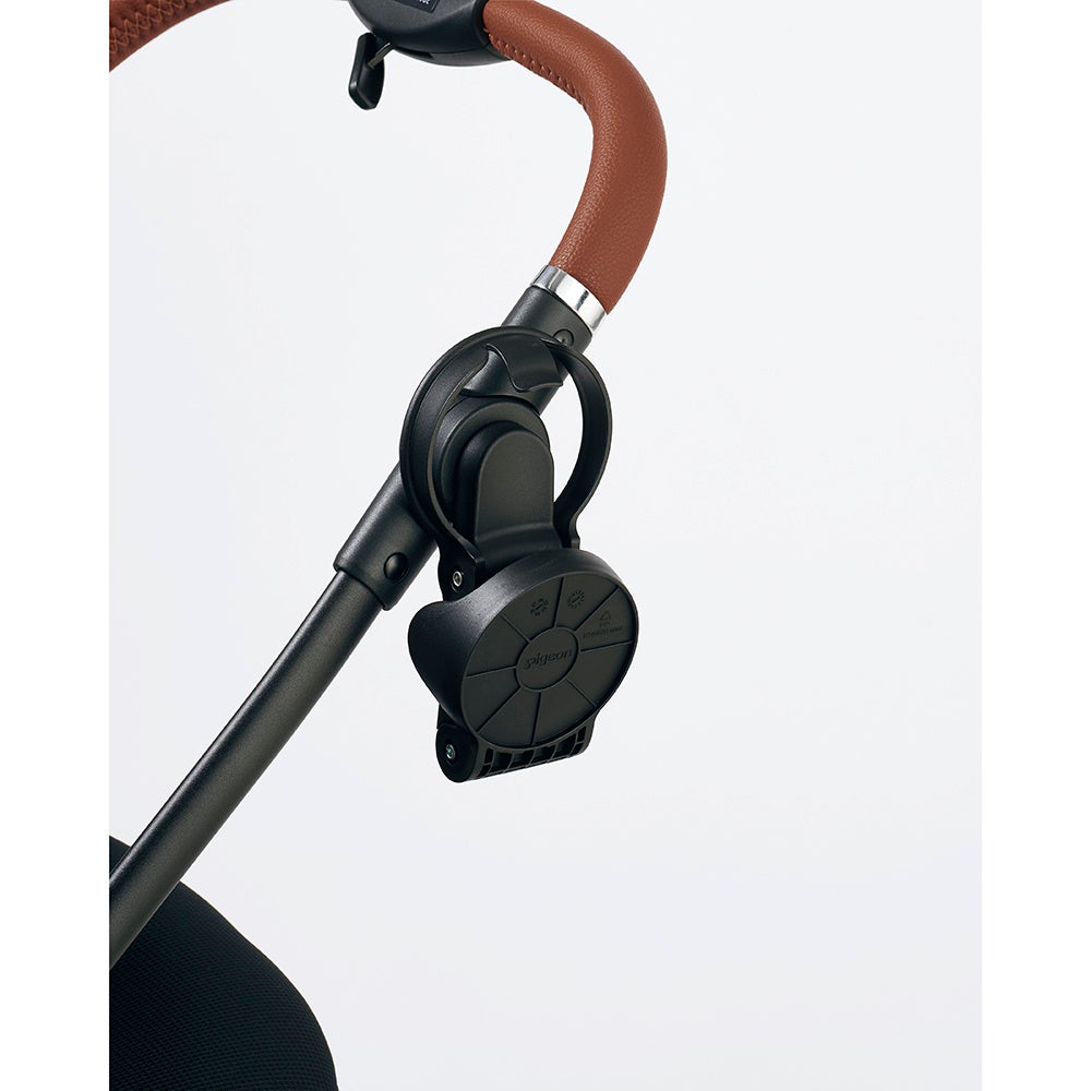 身長差のあるママとパパなど、使う人の身長や状況に合わせて押しやすい高さに調節できるレザー調ハンドルに、「カップホルダー」(別売り)が取り付けられるようになりました。