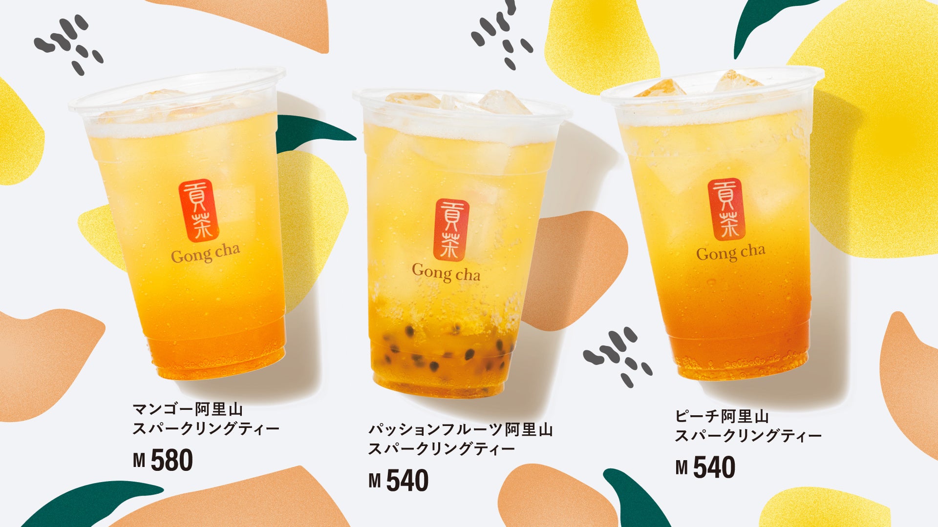 じりじりと暑い日差しが照り付け、本格的な夏が直前に迫ってきたこの季節にゴンチャが皆様にお届けするのは、ゴンチャオリジナルのトロピカルなフルーツソースの香りと炭酸の清涼感、すっきりとしたのど越しが愉しめる、「スパークリングティー」。フレーバーは、夏にぴったりかつゴンチャでも人気のフレーバー「マンゴー」「ピーチ」「パッションフルーツ」を使った3種をご用意いたしました。また、お店で一から丁寧に仕込む、フレッシュでスッと舌になじむような炭酸に、高級台湾茶として名高く爽やかな阿里山ウーロンティーと組み合わせ、“ティーを使用したソーダ”ならではの華やかな味わいに仕上げました。