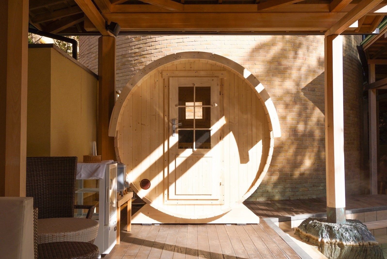 【ホテル川久】 サウナ大国エストニア産バレルサウナを温泉サロン「悠久の森」に新規導入。綿密に設計された熱循環構造とオリジナルアロマ水によるセルフロウリュで極上のリラクゼーションを。