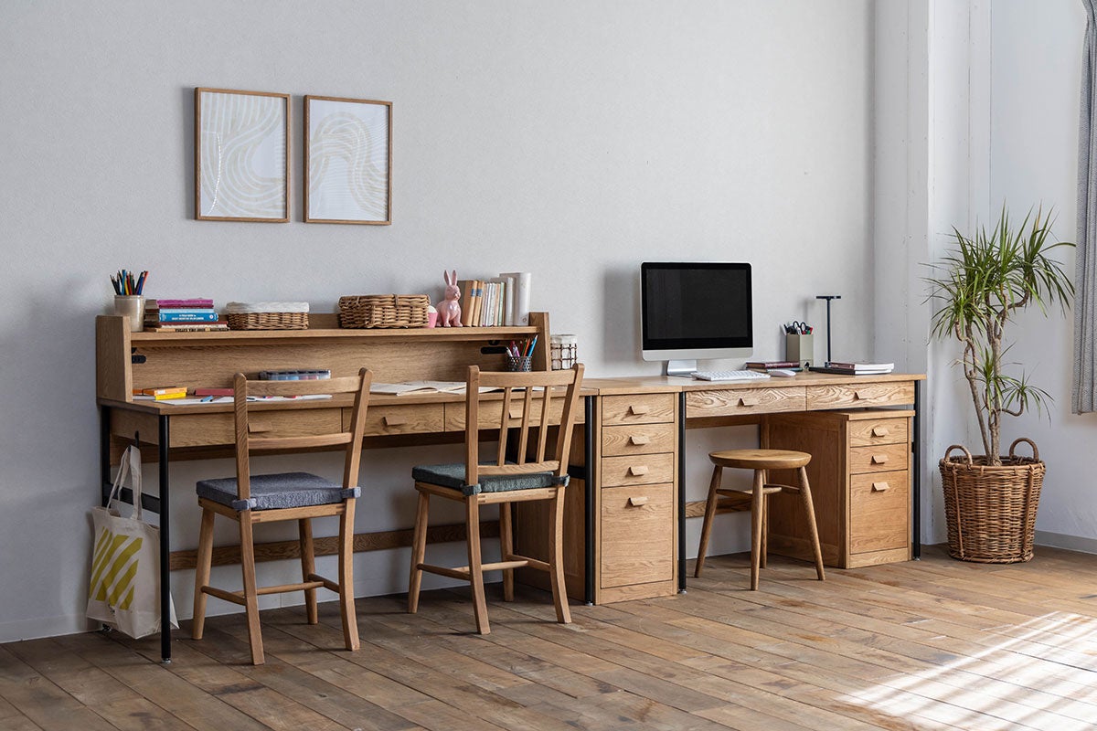 大人も、子どもも、親子でも。世代を問わず使えるシンプルでスタイリッシュなデザインのデスク。