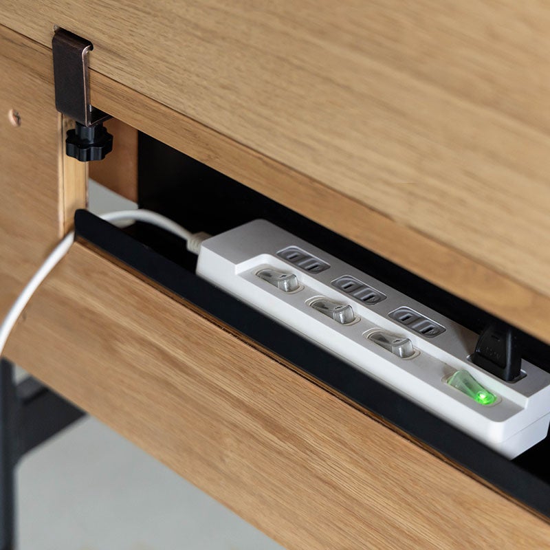 デスク背面には電源タップや配線を収納できるトレーがついていますので、煩雑になりがちなコード類を整理し、デスク周りをすっきりと保ちます。