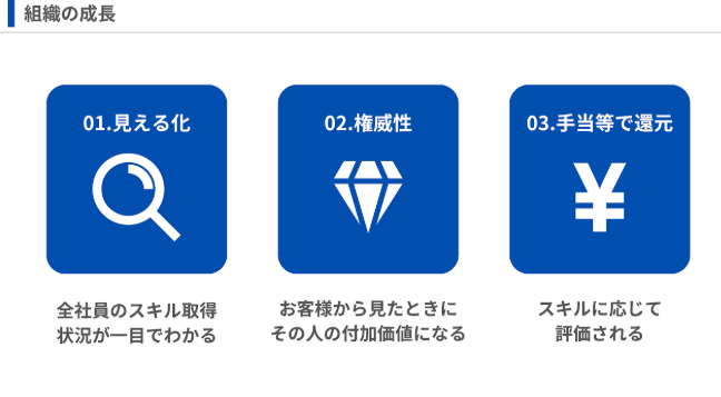 社員一人ひとりがどれだけ学び、スキルを習得したかが単位として可視化され、努力や成長が一目でわかるようになりました。これにより、社員は自身の現在地や進むべき道が明確になり、計画的なスキル習得が可能になりました。