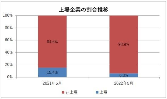 結果は「上場企業」1社(6.3%)、「非上場企業」15社(93.8%)でした。