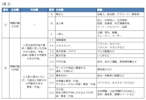 投稿内容に「炎上」というキーワードを含む2,877件の投稿から86件の炎上事案を抽出し、炎上の原因となった問題行動の主体、問題行動の内容、炎上を起こした企業の業種などの切り口から傾向を分析しました。