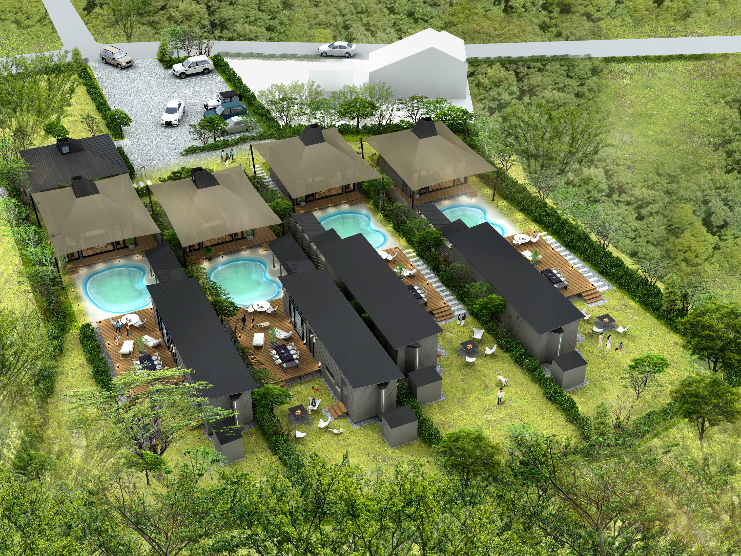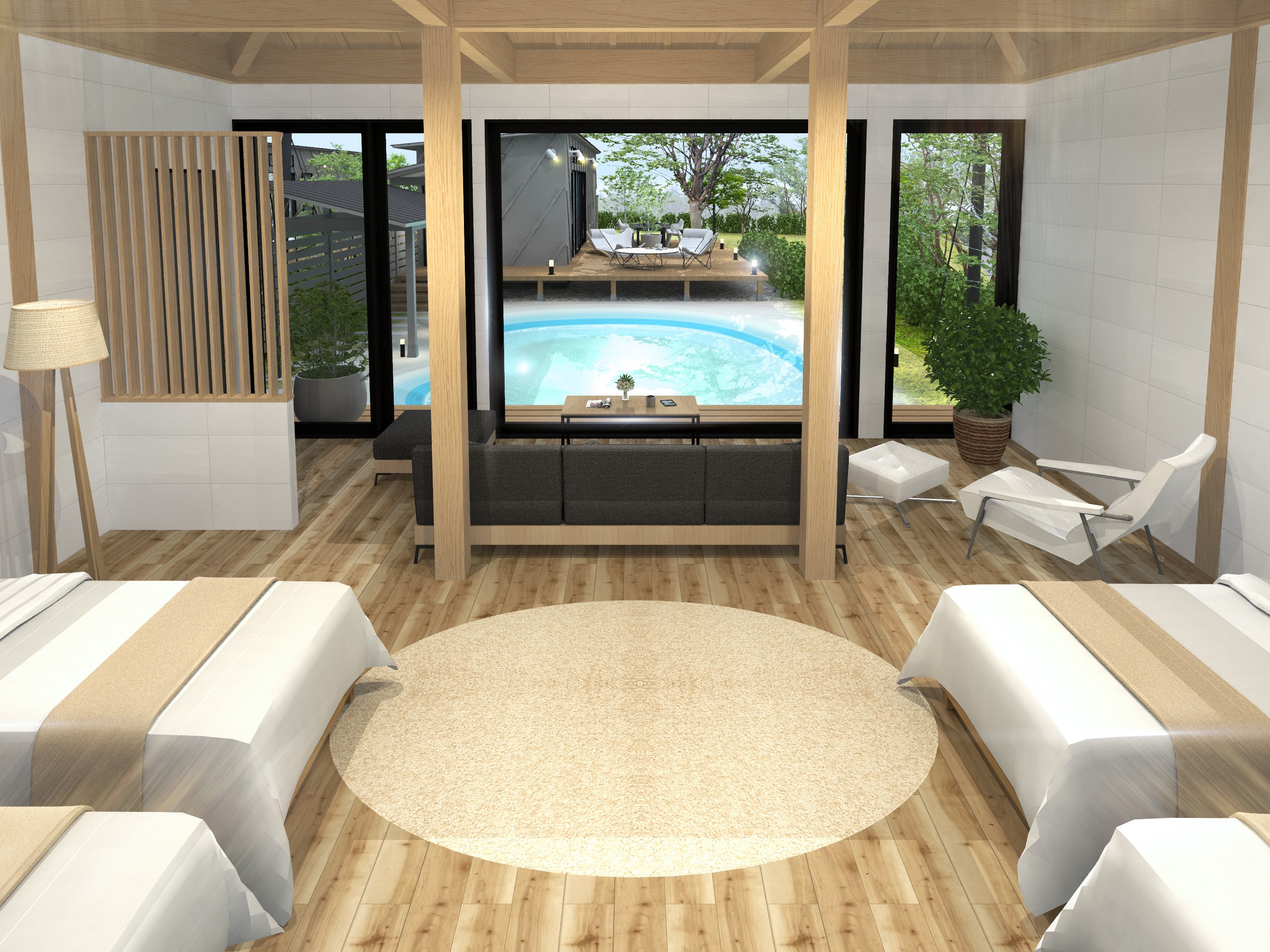 千葉県南房総市の自然豊かな温泉が湧き出る場所に、4棟限定の客室温泉、サウナ、プライベートプール、プライベートドッグラン付のプライベートヴィラホテルが誕生します。自然豊かな場所で優雅な滞在と、プライベートヴィラならではの非日常体験をお楽しみください。