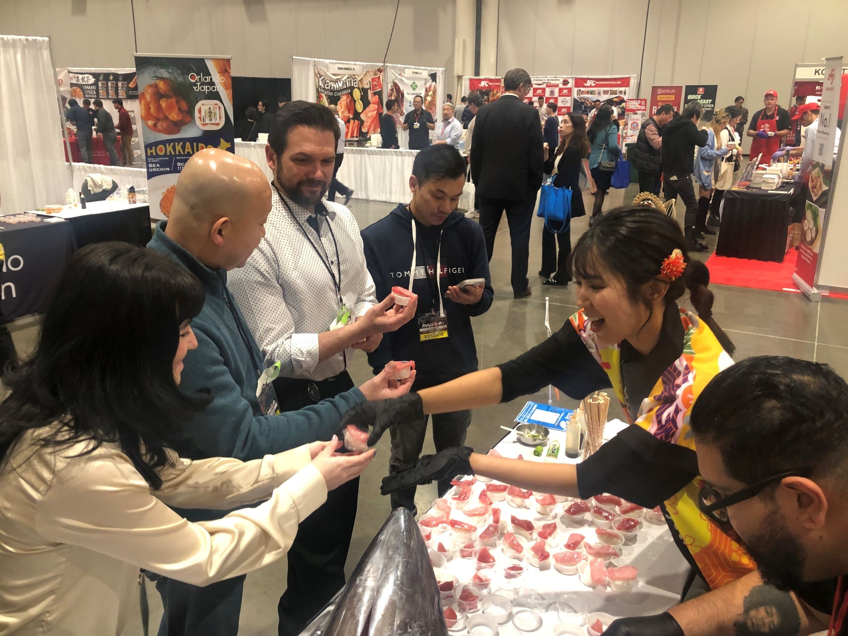 ヒューストン拠点の初の取組として、毎年全米で開催されているラーメン・居酒屋に特化した米国唯一の専門展示会「RAMEN EXPO/IZAKAYA EXPO USA」(会期12月5日~6日、於:ヒューストンNRGセンター)において、「RAMEN BOOT CAMP in Houston」を開催しました。本イベントでは、ラーメン業界を牽引する著名日本食料理人等を講師に迎え、現地のレストラン関係者や日本食料理人を対象に、日本のラーメン文化を伝えるとともに調理実演を行いました。また、ホタテ等の日本産水産物の調理法等を紹介するセミナー等を通じ、日本産水産物や伝統調味料等の魅力を発信しました。併せて、同展示会の会場内においては、水産事業者のPRブース設置や来場したバイヤーへの試食サンプル提供、商談支援及び販売、調達方法の紹介等のプロモーション支援を行いました。