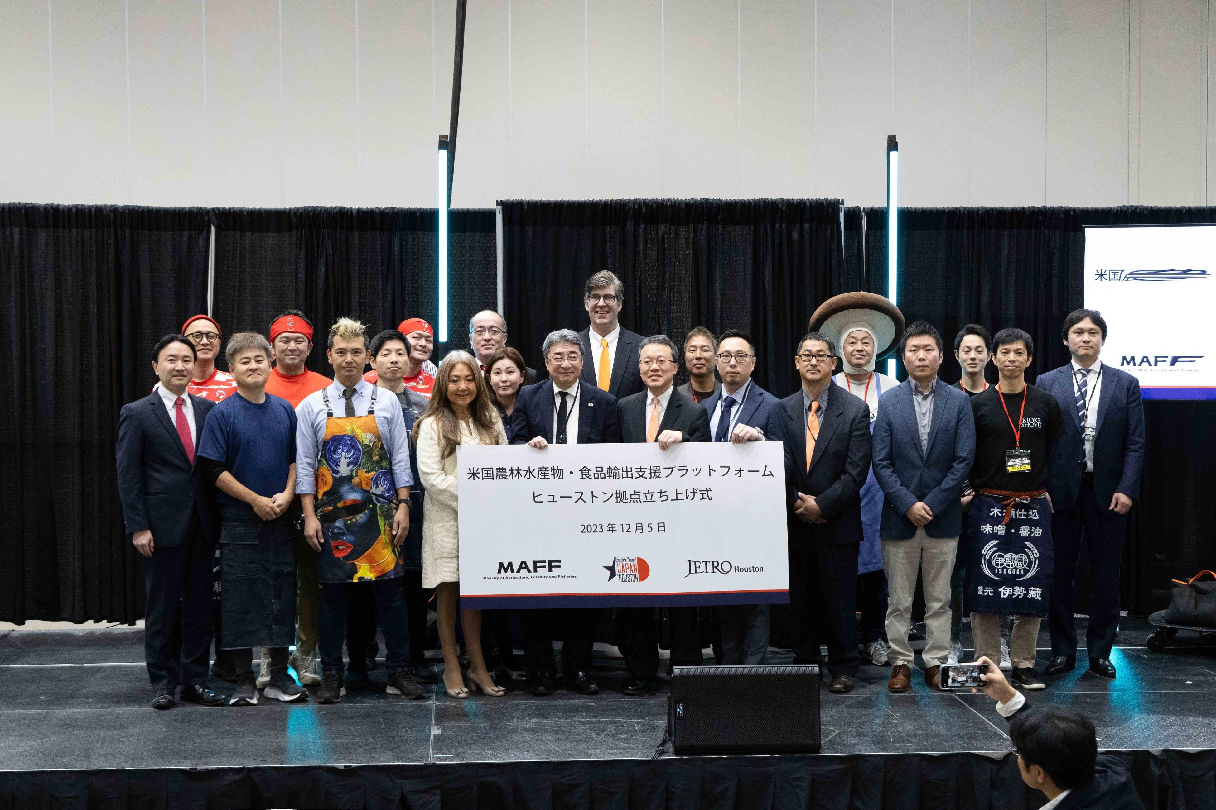 RAMEN EXPO/IZAKAYA EXPO USAの開催に合わせ、米国農林水産物・食品輸出支援プラットフォーム・ヒューストン拠点の立上げ式を開催し、ヒューストン拠点の発足と協議会の設置、当面の活動が発表されました。現地のキーパーソンである日本食関連事業者が一堂に会し、輸出支援プラットフォームが官民一丸となって取り組んでいくことが確認されました。