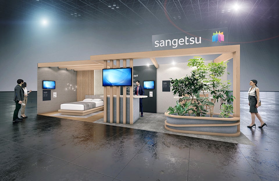 当社のブーステーマは「IN and OUT」。サンゲツグループでは、インテリアとエクステリアの垣根を越えた空間総合提案を行っており、同展示会では、グリーンをふんだんに取り入れたブースで、「宿泊」と「飲食」の2つの空間を体感することができます。また、オリジナルデザインの特注ラグ、メンテナンス性に優れた椅子生地、環境に配慮した壁紙など、デザイン性と機能性を兼ね備えたプロダクトを取り入れながら、ホテルや飲食店が直面する課題に寄り添った空間提案を紹介します。サンゲツグループならではのアイデアが詰まったブースに、ぜひお越しください。