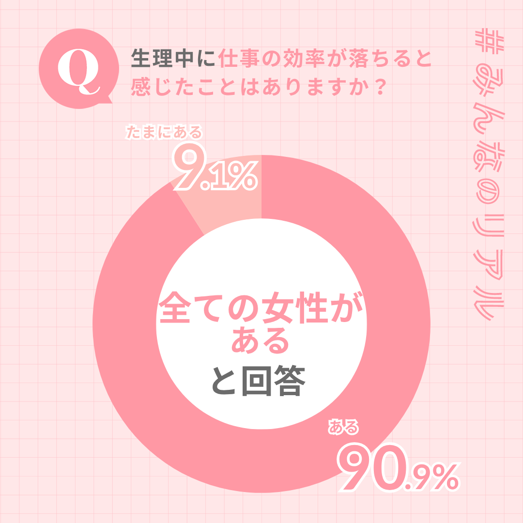 ■ 回答者全員が「生理中に仕事の効率が落ちると感じたことがある」と回答