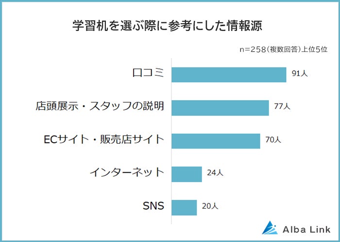 ・学習机を選ぶ際に参考にした情報源は「口コミ」
