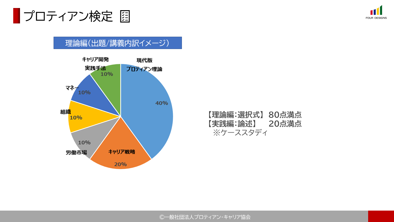 現代版プロティアン・キャリア理論をはじめ、現在の労働市場からキャリア戦略のケーススタディまで体系的に学ぶことができます。また、法政大学キャリアデザイン学部で14年教授をしている、当協会の代表理事 田中研之輔が検定を監修しており、プロティアン・キャリア講座にて直接講師として指導をしています。