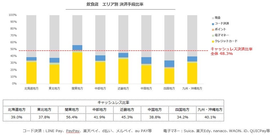 すべての地域で、キャッシュレス比率は30%を超えている。