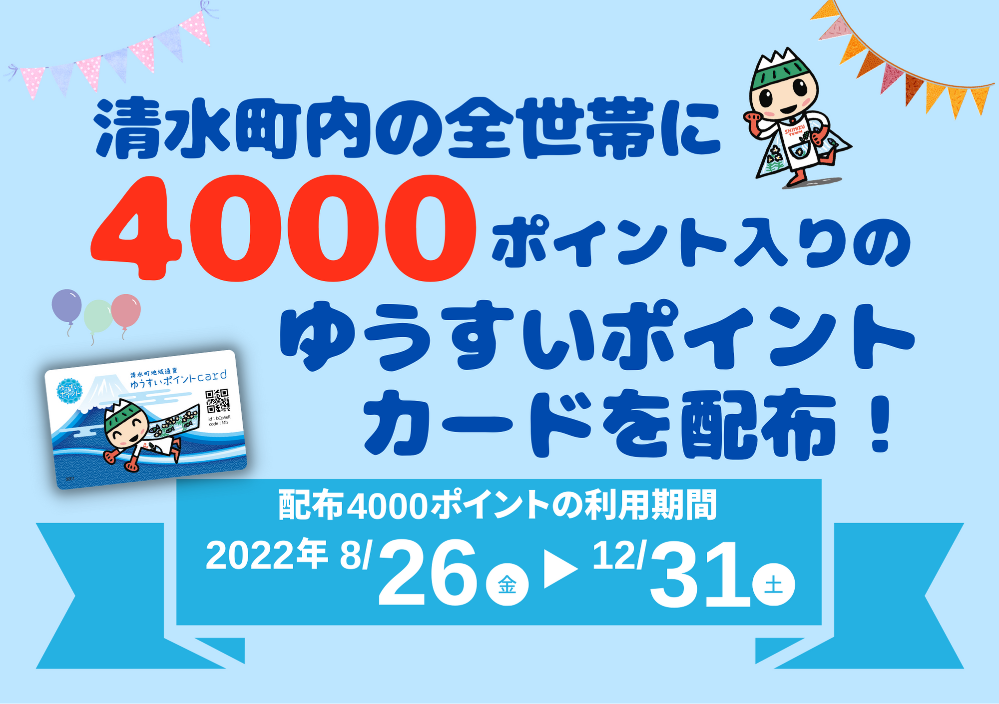 静岡県駿東郡清水町にて、町内全世帯である約14,300世帯に町内加盟店で使える「ゆうすいポイント」4,000円相当のポイントを配布。コロナ禍の経済支援施策として活用