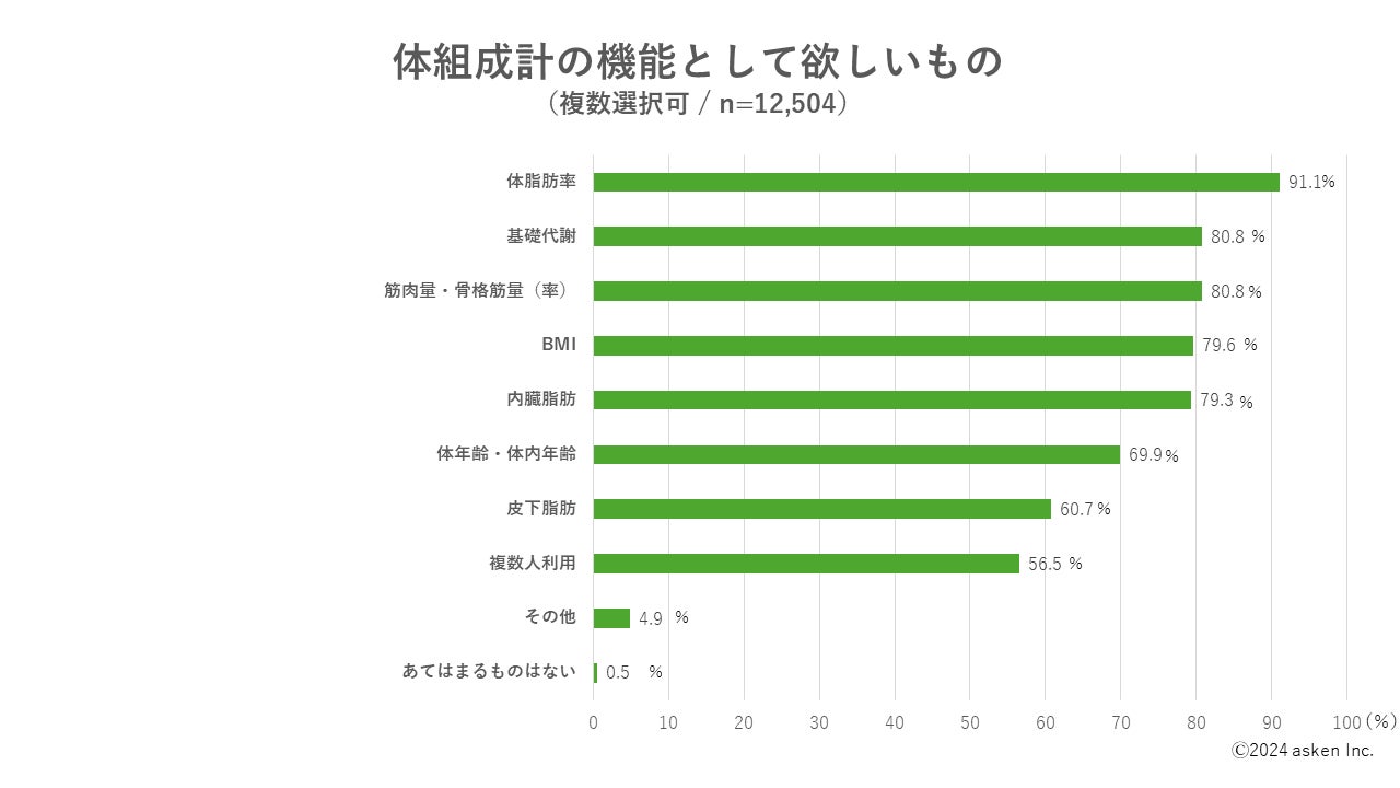 また、アンケートで「体組成計の機能として欲しいもの」について聞いた結果を反映して測定項目の充実を図るなど、よりユーザーの方にご満足いただける体組成計の実現を目指しました。