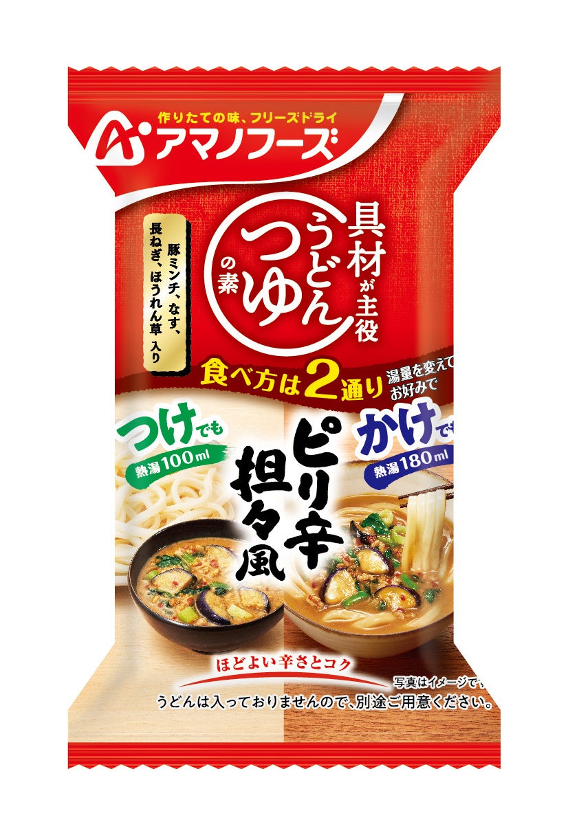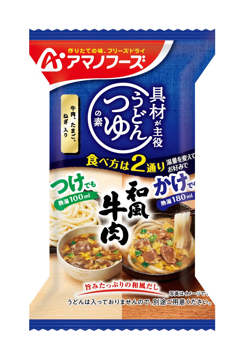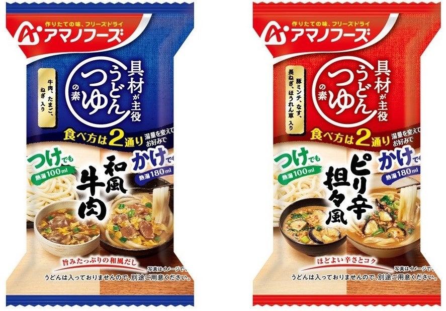 アサヒグループ食品株式会社(本社 東京、社長 川原浩)は、「アマノフーズ」ブランドより『うどんつゆの素 和風牛肉』『うどんつゆの素 ピリ辛 担々風』を8月29日から発売します。