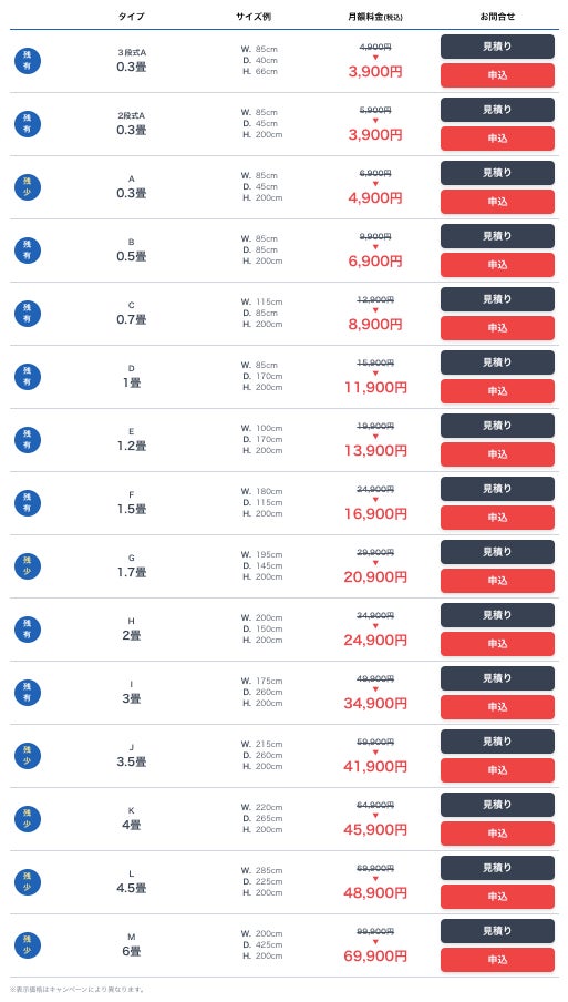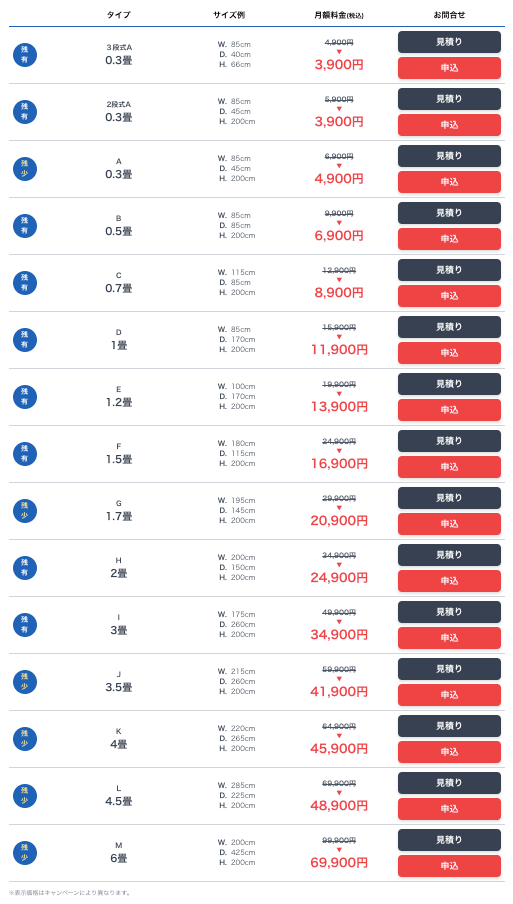 荷物以上に大きな部屋を借りてしまうことや、狭すぎて荷物が入らなかったなんていうトラブルを回避できます。