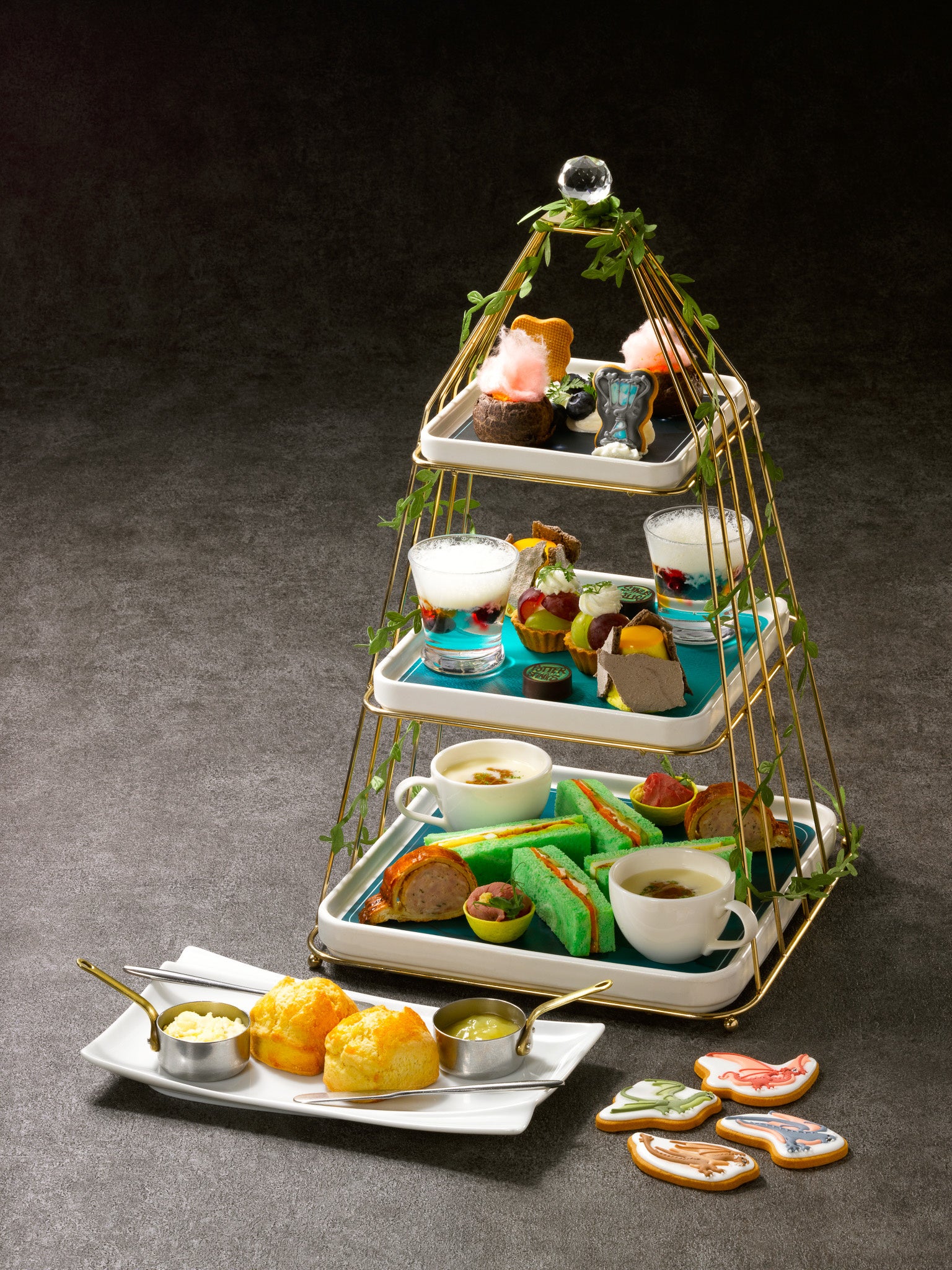 そのほか、期間限定のフードメニューも登場。伝説の試合<三大魔法学校対抗試合(トライウィザードトーナメント)>にインスパイアされ、映画のモチーフが散りばめられた期間限定のアフタヌーンティーや、ダームストラングとボーバトンをイメージしたプレミアムバーガー等「炎のゴブレット」がテーマのお食事やスイーツを提供いたします。
