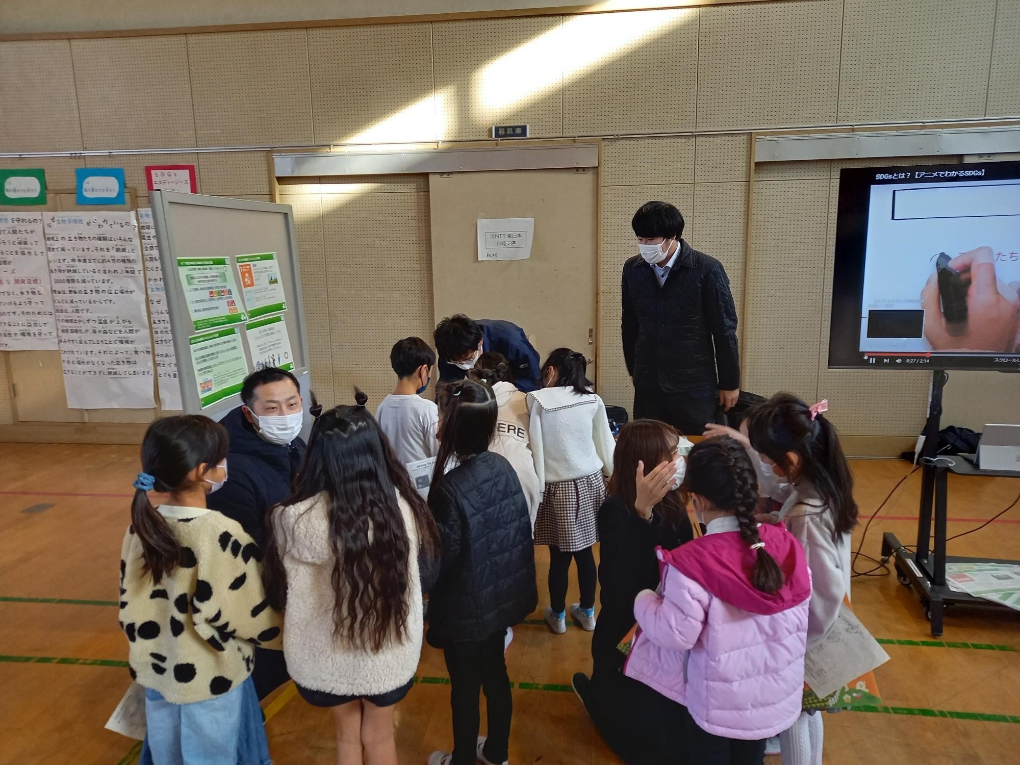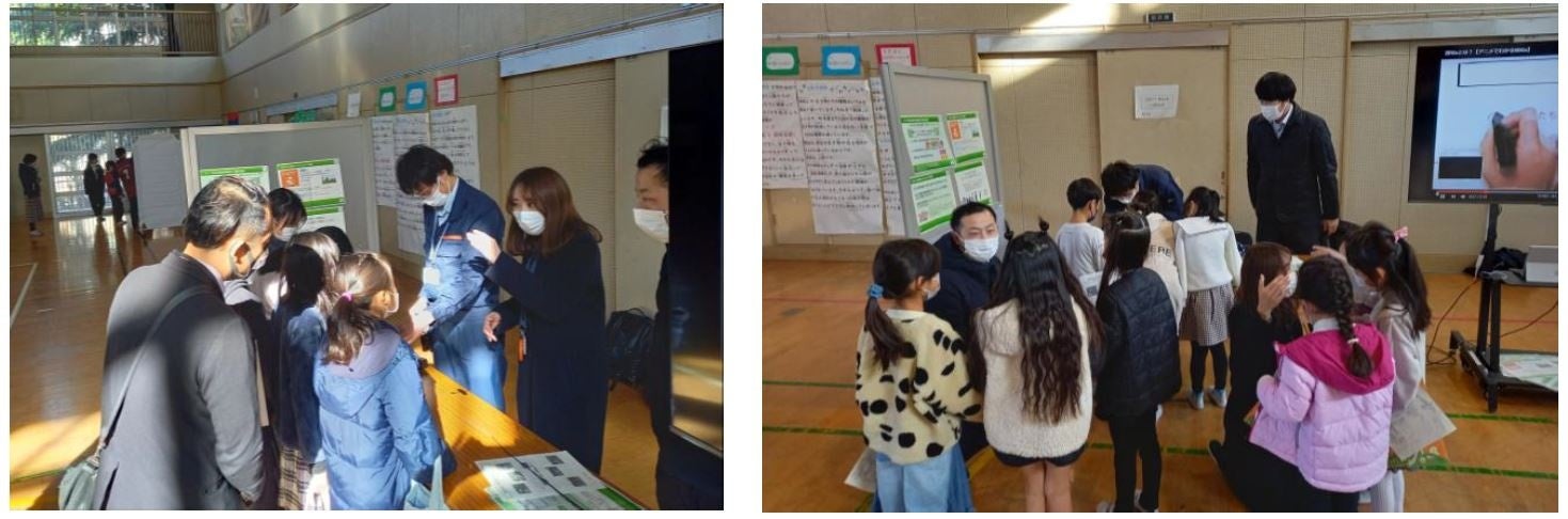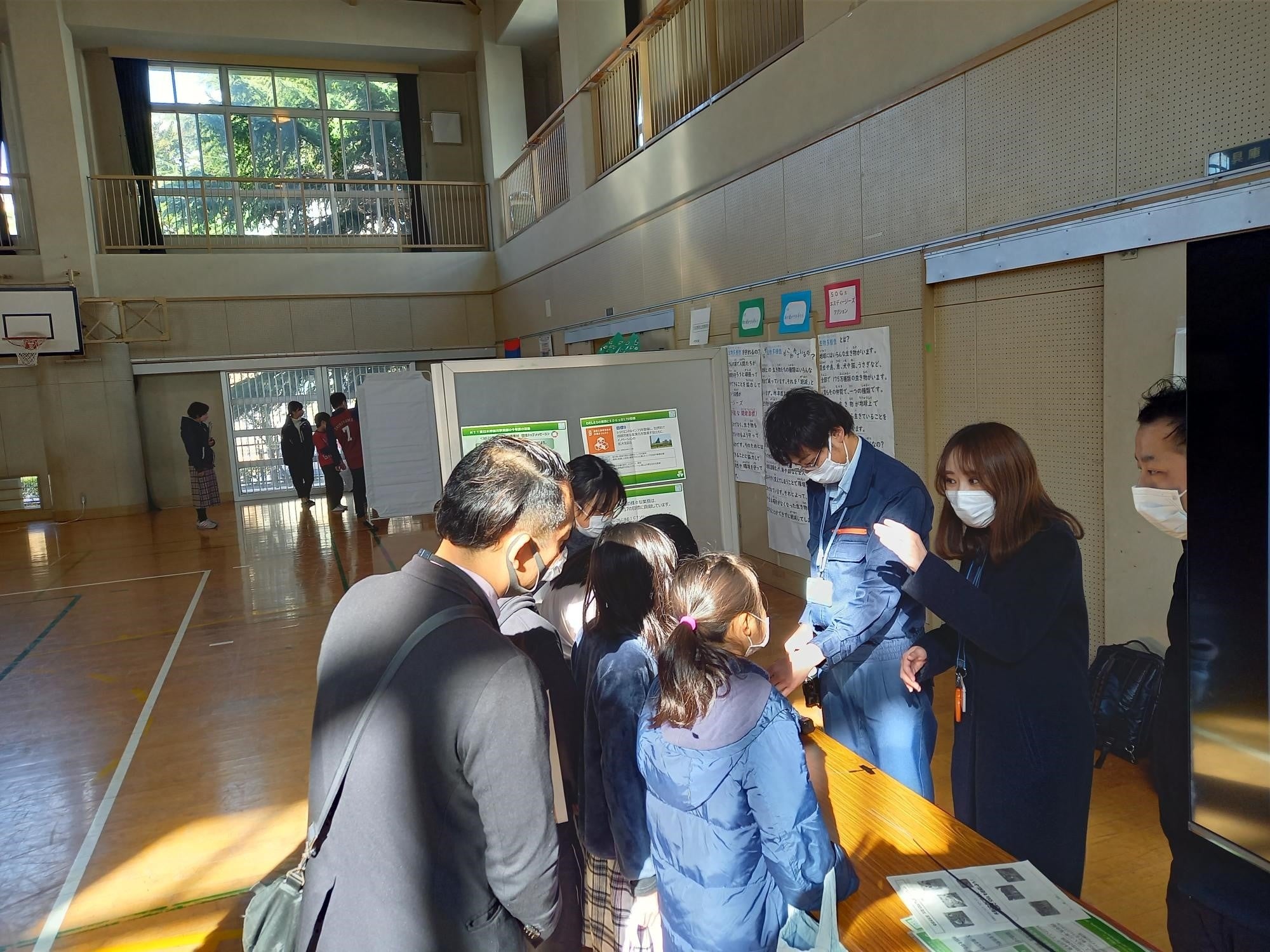 平間小学校はかなりSDGsに力を入れており、学校の中にもいろんな展示がされていました。子どもたちも興味を持って一生懸命話を聞いてくれ、NTT東日本グループが進める取り組みをたくさん理解していただいたと思います。