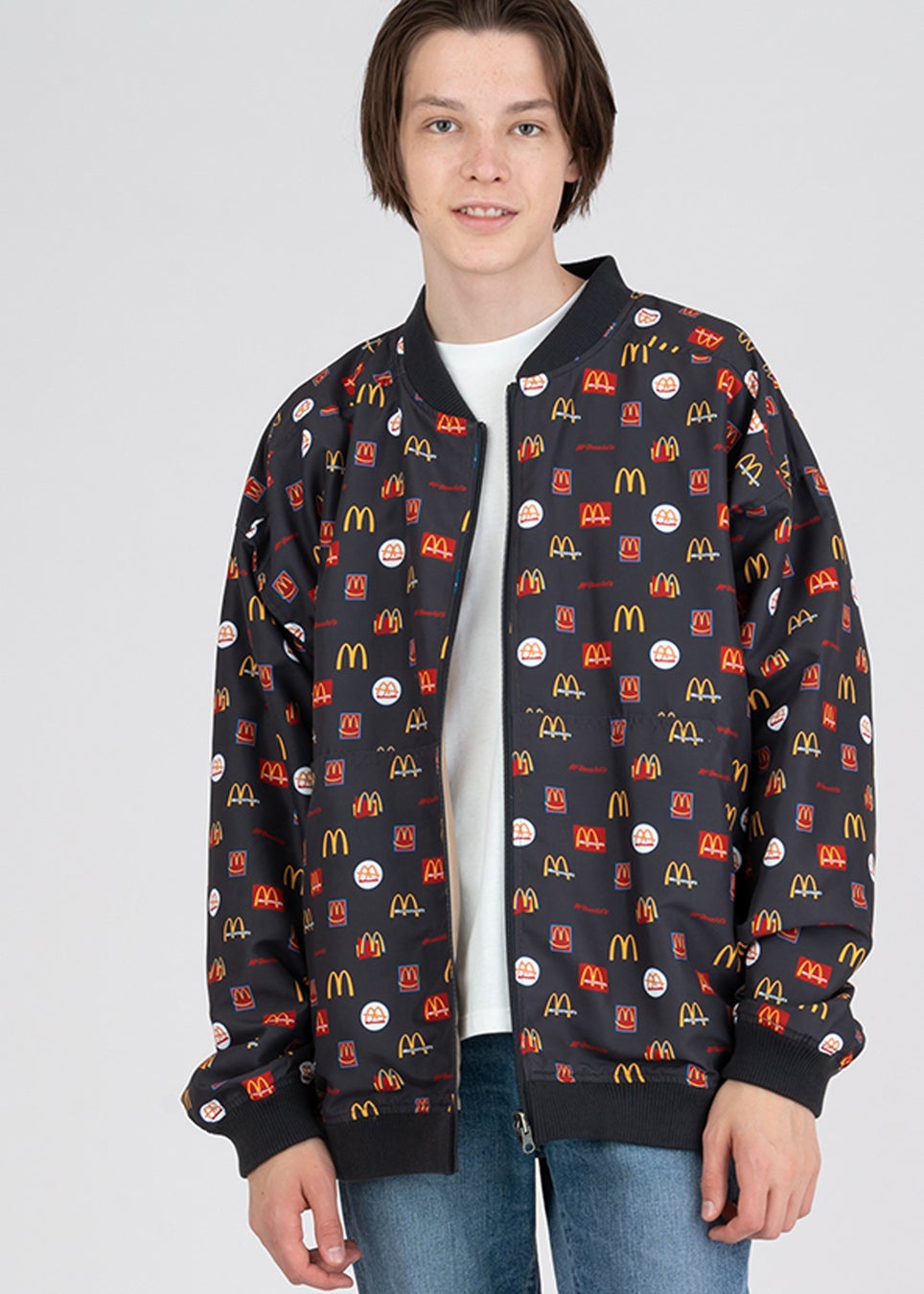 胸元にゴールデンアーチが刺繍された面と、1955年〜現在までの歴代のロゴをパターンにした面のリバーシブルデザインです。総柄と無地の2パターンが楽しめるリバーシブルブルゾン。その日の気分でアレンジでき、いろいろなコーディネートが楽しめます。