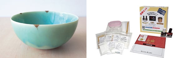 欠けたり割れたりした器を、漆を使って修復し金で仕上げる伝統的な技法です。