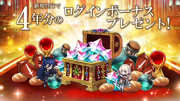 新規登録された全てのユーザー様に、「4年分のログインボーナス」に相当する豪華アイテムをプレゼントします。