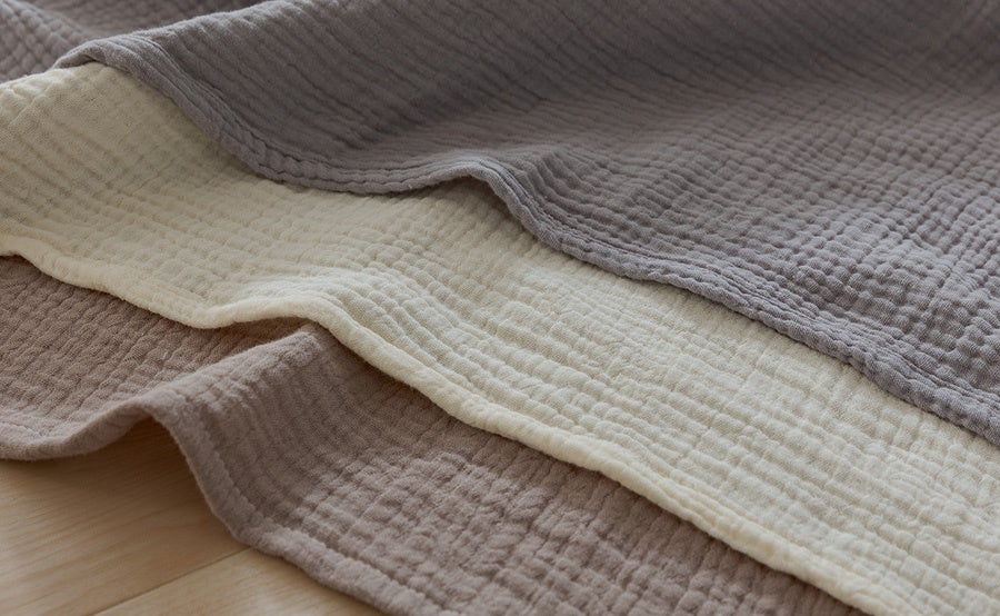 コットン100%ガーゼの3枚重ねだから実現した、柔らかさ&ふんわりした軽さ。