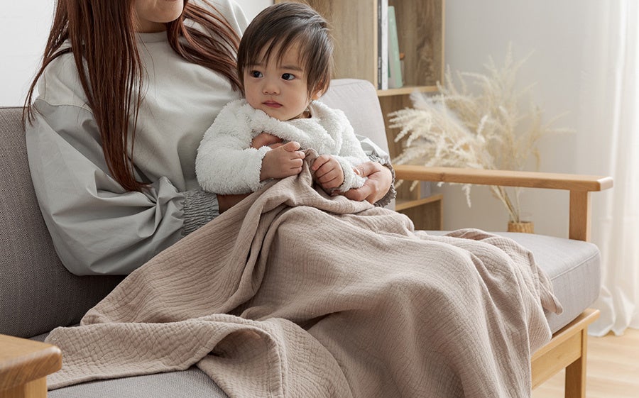 赤ちゃんのプレイマットやお部屋のラグマット、ソファなどにかけるマルチカバーとしてもおすすめです。