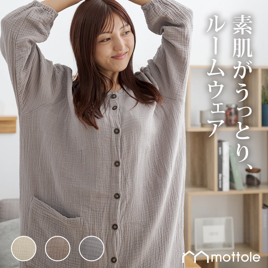 【素肌がうっとり、ふんわり3重ガーゼのウェア&カバー】心地よく身にまとえる「3重ガーゼワンピース」「3重ガーゼマルチカバー」をmottole(モットル)より新発売。