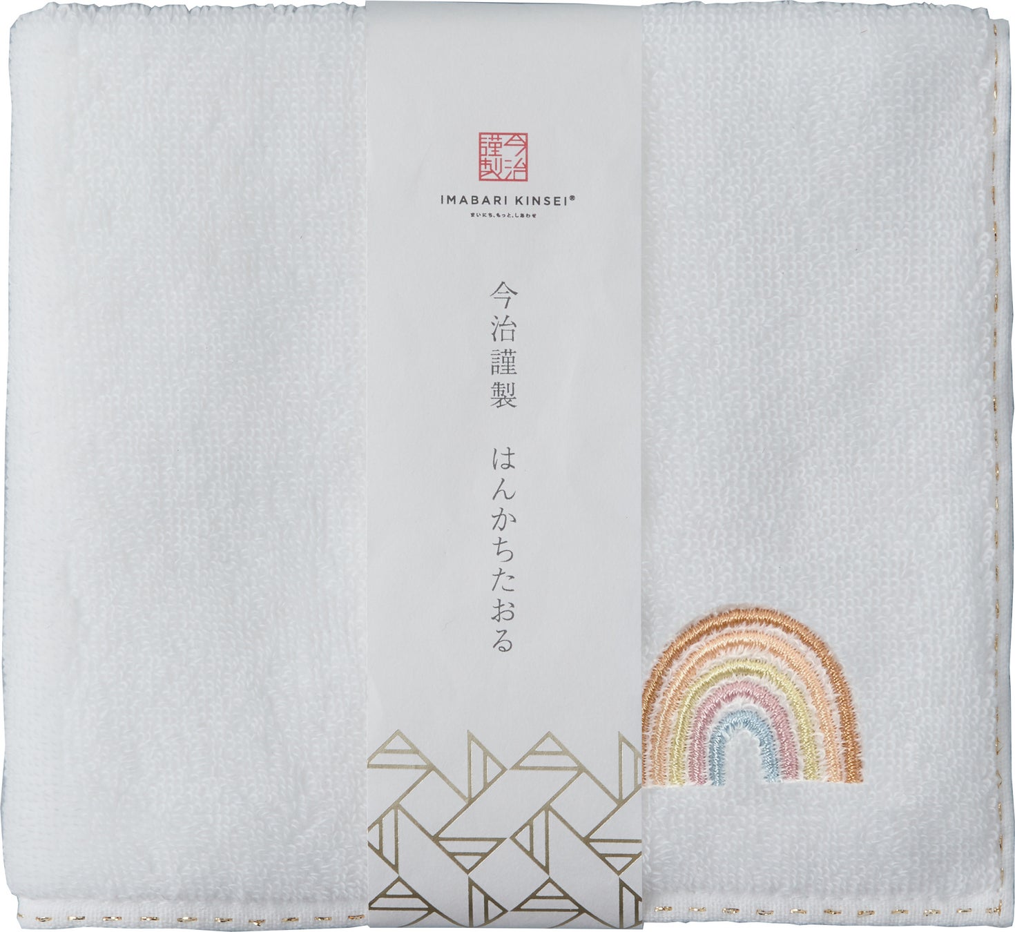 今治謹製 表参道のテーマカラーであるゴールドを基調にした、“5”色の虹の刺繍入りです。